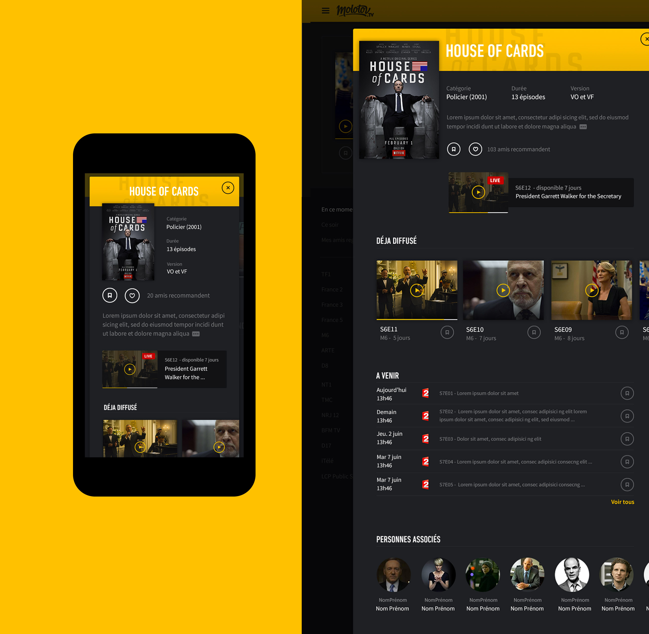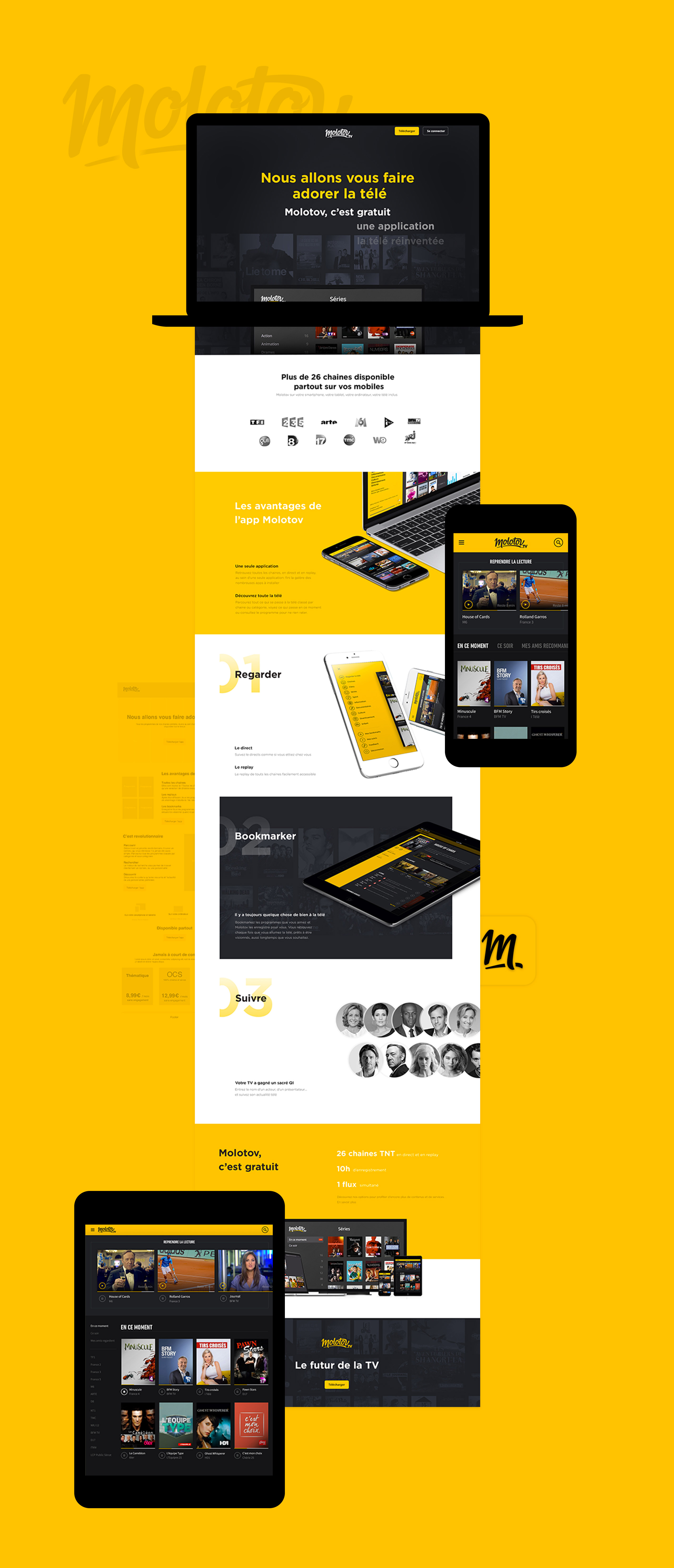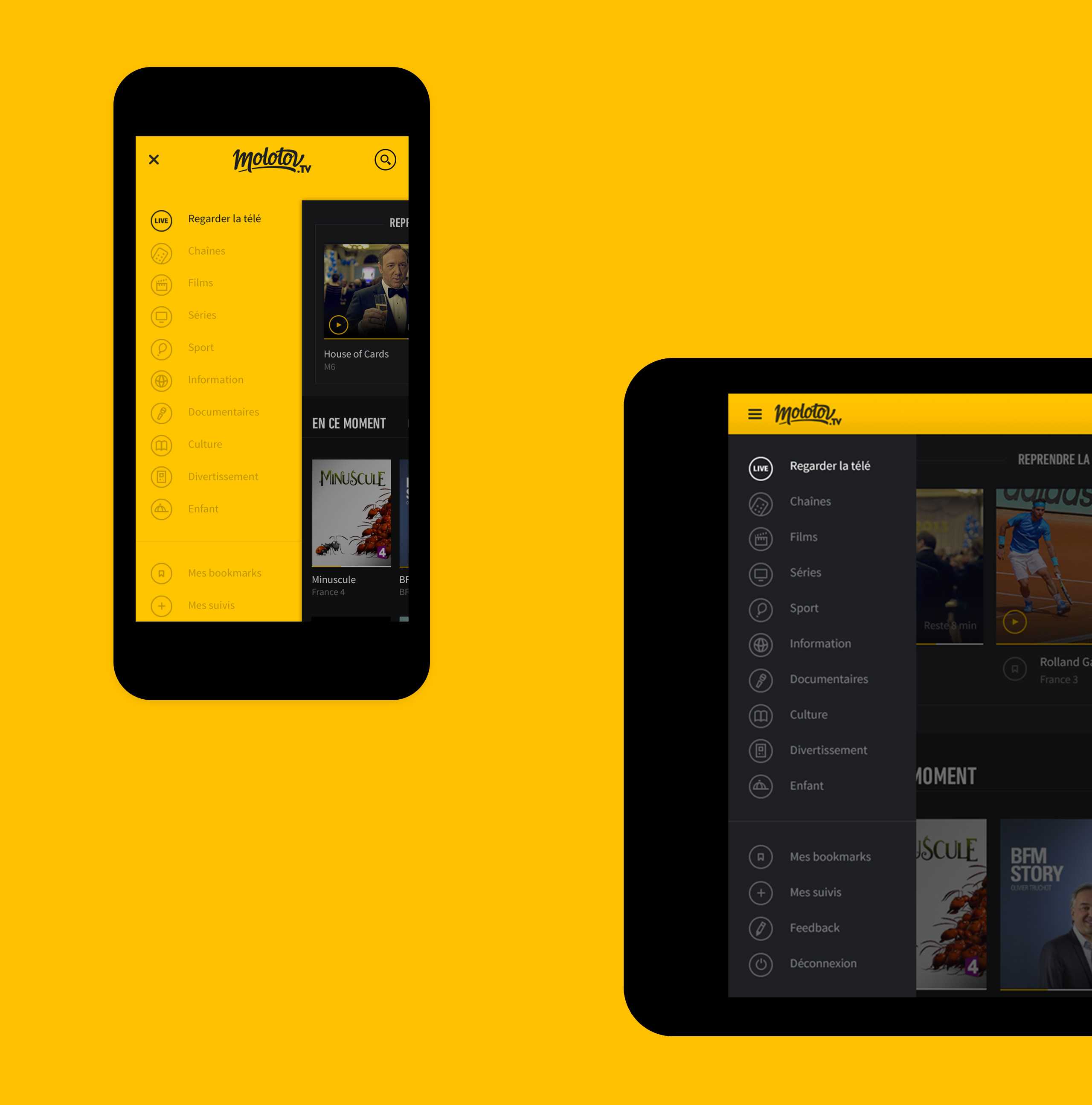 I am a member of a generation that doesn’t posses a television and has a preference for the verb “to be” rather than “to have”. Our consumption modes have evolved and television is becoming more modern thanks to the Molotov app. My design approaches take into account current overall design.